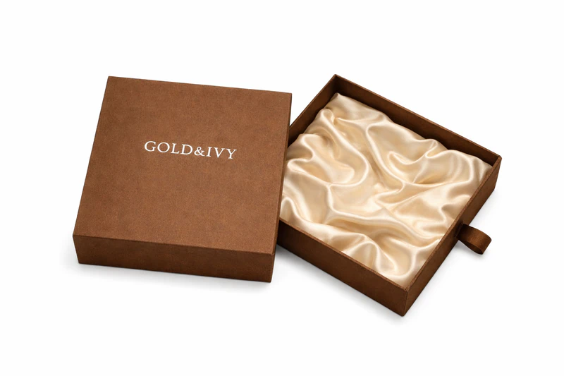Gold foil stamping delivers a rich metallic finish for a luxurious brand presentation.